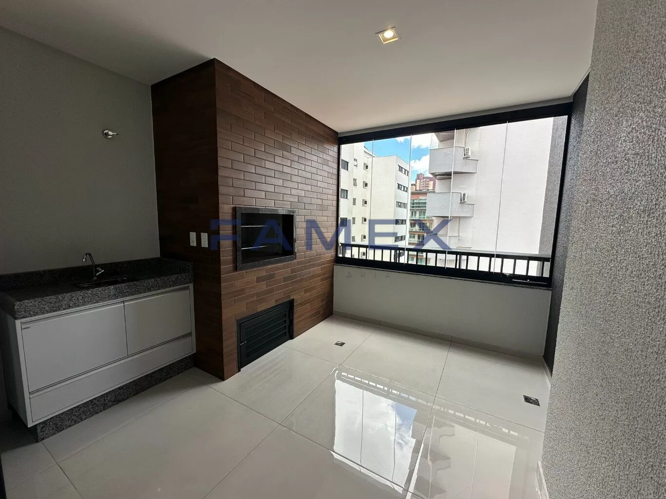 •Sacada com churrasqueira e fechamento em sistema Reik