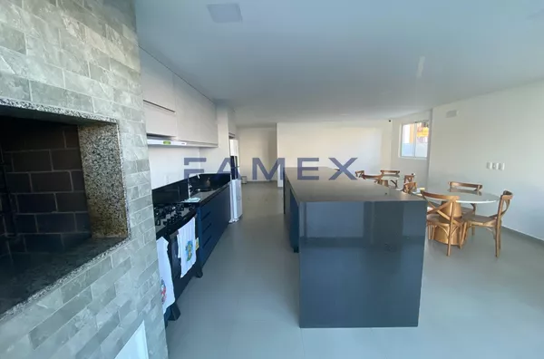 Apartamento com 01 Quarto + 01 Suíte, Sacada com churrasqueira, cozinha, Sala de Tv e 01 Vaga de garagem.