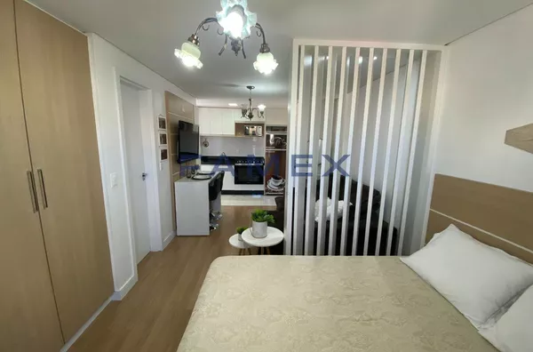 Descrição: Este charmoso apartamento Studio está disponível para locação. Ele é totalmente mobiliado, com móveis planejados e eletrodomésticos novos e de ótima qualidade, garantindo conforto e praticidade para quem procura um espaço aconchegante para chamar de lar.