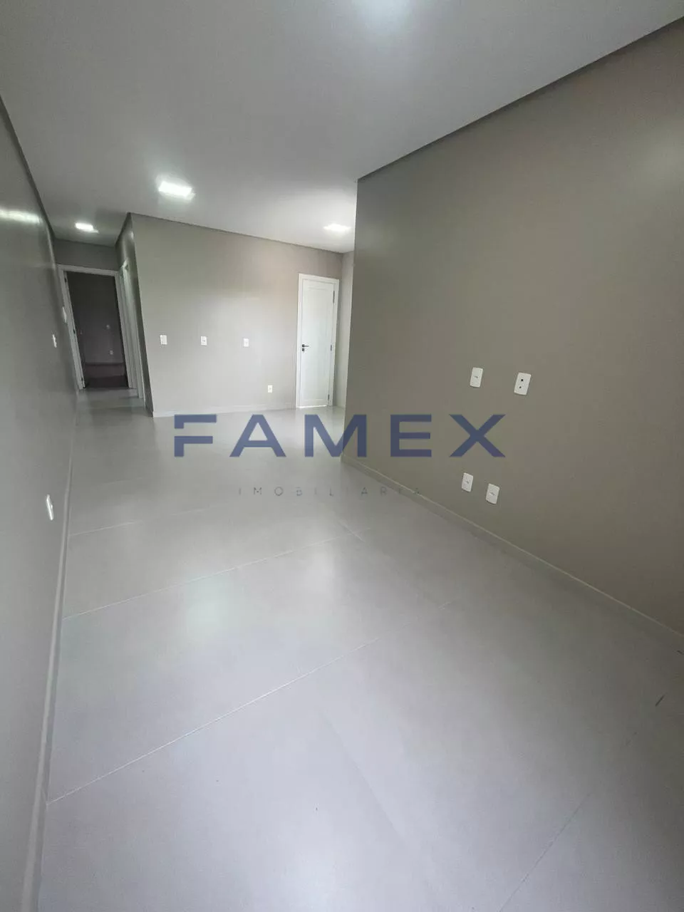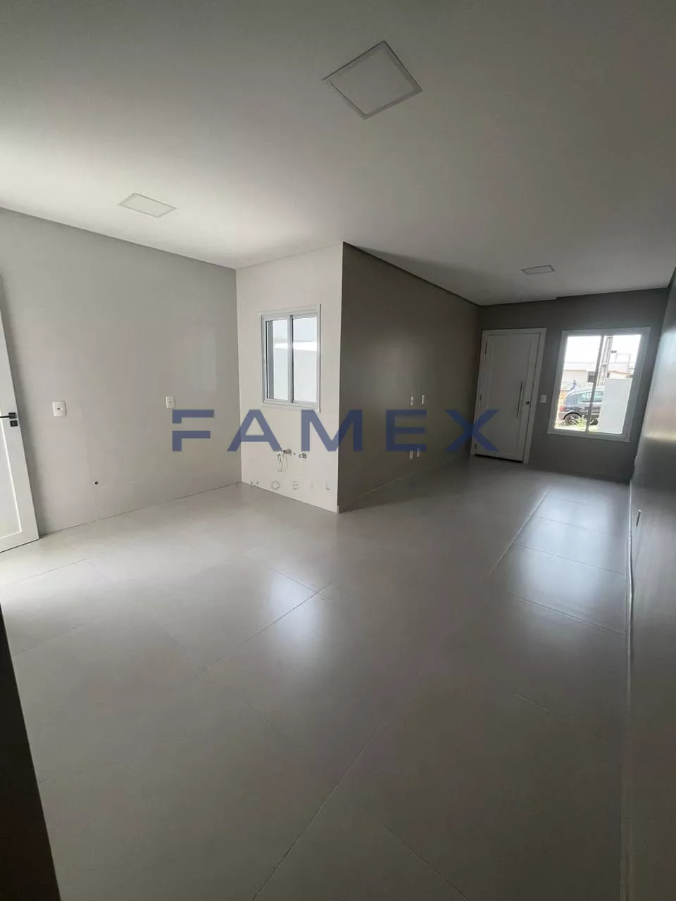 Sala e cozinha com piso em porcelanato