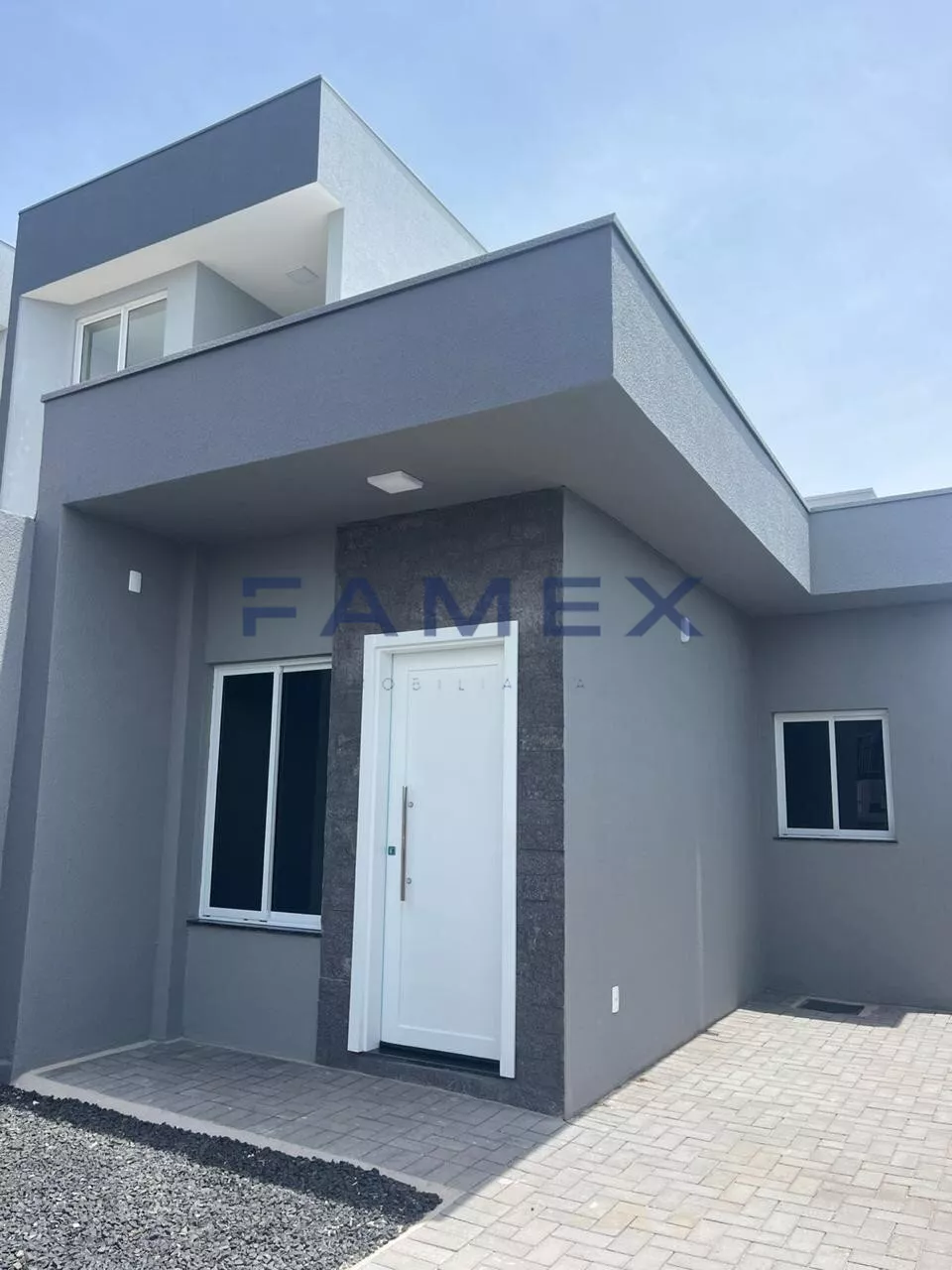Fachada moderna com acabamento em pedra