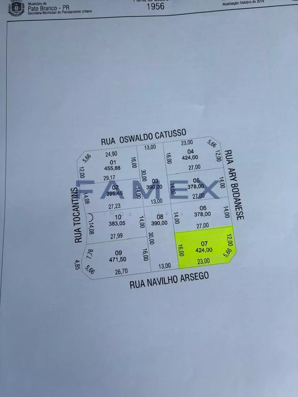 Terreno para venda 553,03m², São Francisco, Pato Branco