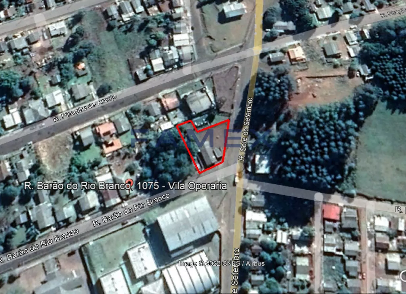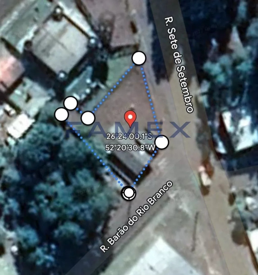 A Imobiliária Famex vende terreno de esquina com 804m² na Cidade de Clevelândia - PR. Frente da Rua Barão do Rio Branco com 19m e da Rua 7 de Setembro com 36,5m. Área construída de 140m².