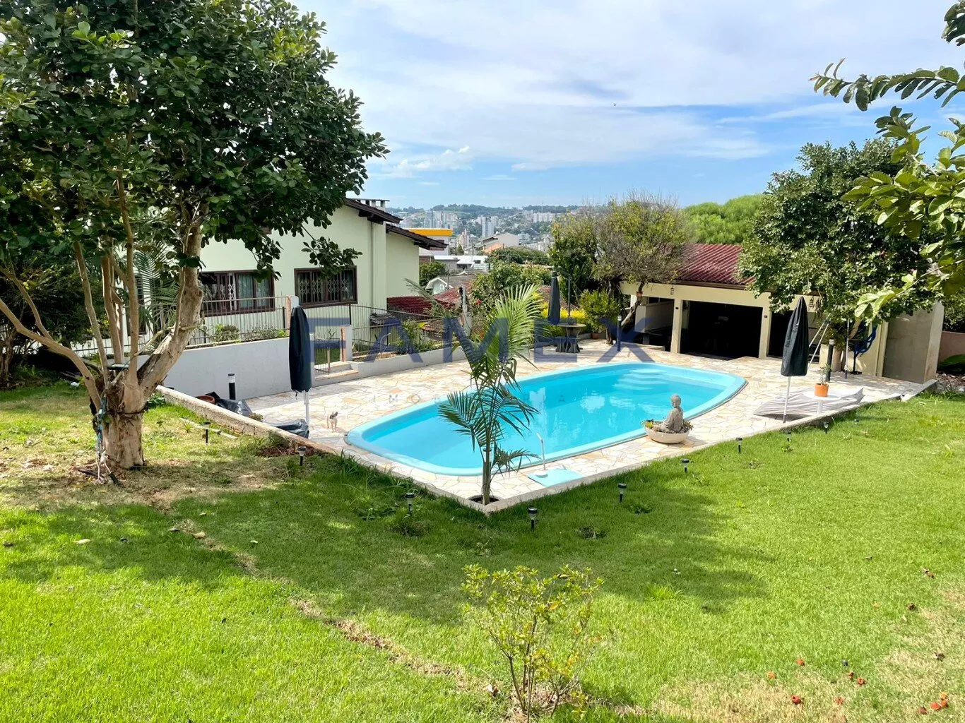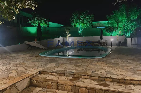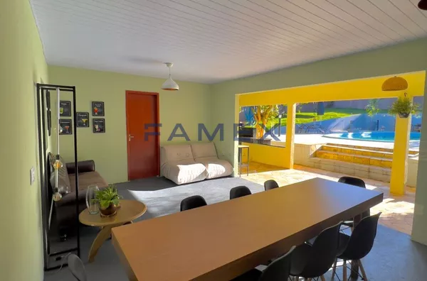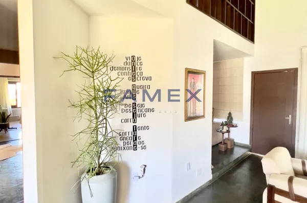Casa inteiramente projetada com ambientes muito bem distribuídos, espaços amplos, com pé direito alto, teto em madeira e janelas grandes, que proporcionam muita luminosidade e ventilação. Composta por cinco dormitórios (sendo duas suítes), sete banheiros, quatro salas, três cozinhas (duas de apoio), três ambientes com sacadas, três vagas de garagem cobertas que podem ser invertidas para ampliar o salão de festas, uma adega climatizada, área de serviços, um lindo jardim com flores e frutíferas que se estende para o setor da piscina, com espaço para tomar sol e uma edícula para descanso e preparo do churrasco.