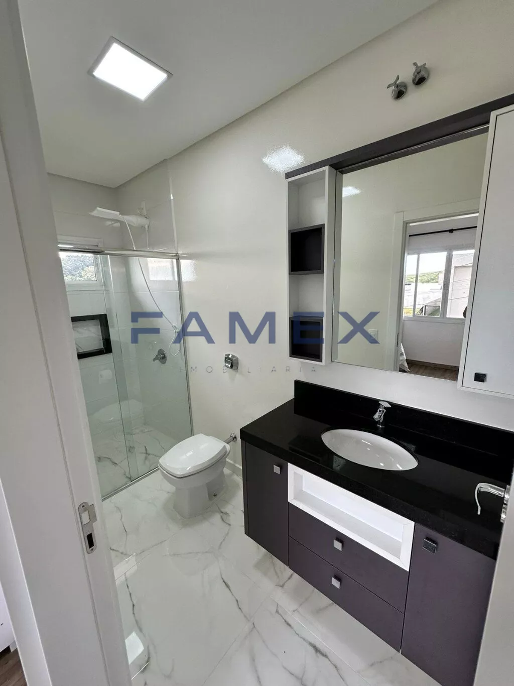 Duas suítes com nichos nos banheiros.